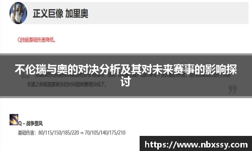 不伦瑞与奥的对决分析及其对未来赛事的影响探讨